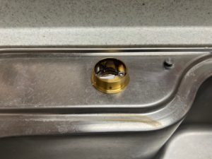 早速取り付けです。場所の選定をし、いざ穴開けです。ステンレスの天板でしたので専用の刃で施工していきます