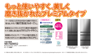 この度ご紹介させて頂きますのは 大容量 600L の冷蔵庫 NR-F60WX2 になります